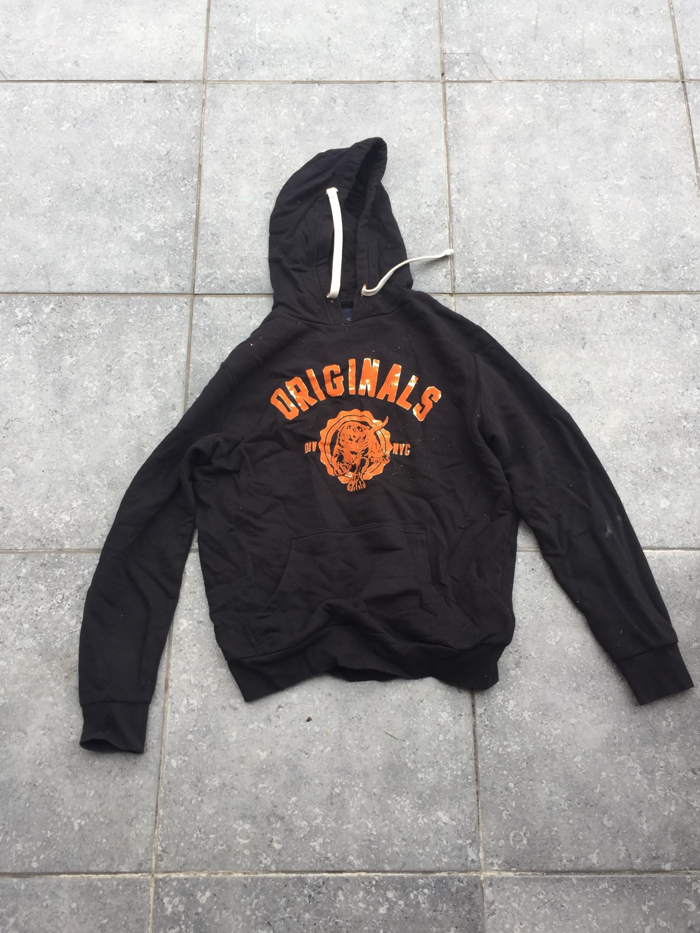 | Blauwe pull van America Today met opschrift. | ![]() |